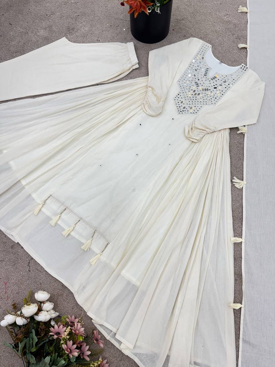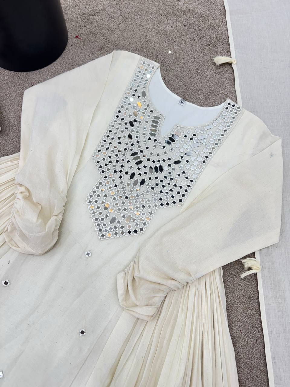 👗 *Gown Fabric* :Pure Khadi cotton With Khatli work with real Mirror